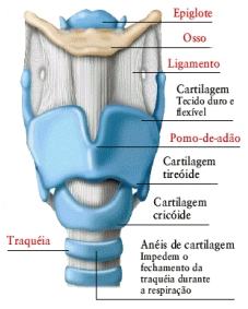 A laringe é um tubo sustentado por peças de cartilagem articuladas. É uma câmara oca onde a voz é produzida. Encontra-se na parte superior da traquéia, em continuação à faringe. O pomo-de-adão, que aparece como uma saliência na parte anterior do pescoço, logo abaixo do queixo, é uma das peças cartilaginosas da laringe. A entrada da laringe é chamada glote. Acima dela existe uma espécie de "lingüeta" de cartilagem, denominada epiglote, que funciona como uma válvula. Quando engolimos, a laringe sobe, e sua entrada é fechada pela epiglote de modo a impedir que o alimento engolido penetre nas vias respiratórias. A laringe é unida por meio de ligamentos ao osso hióide, situado na base da língua.